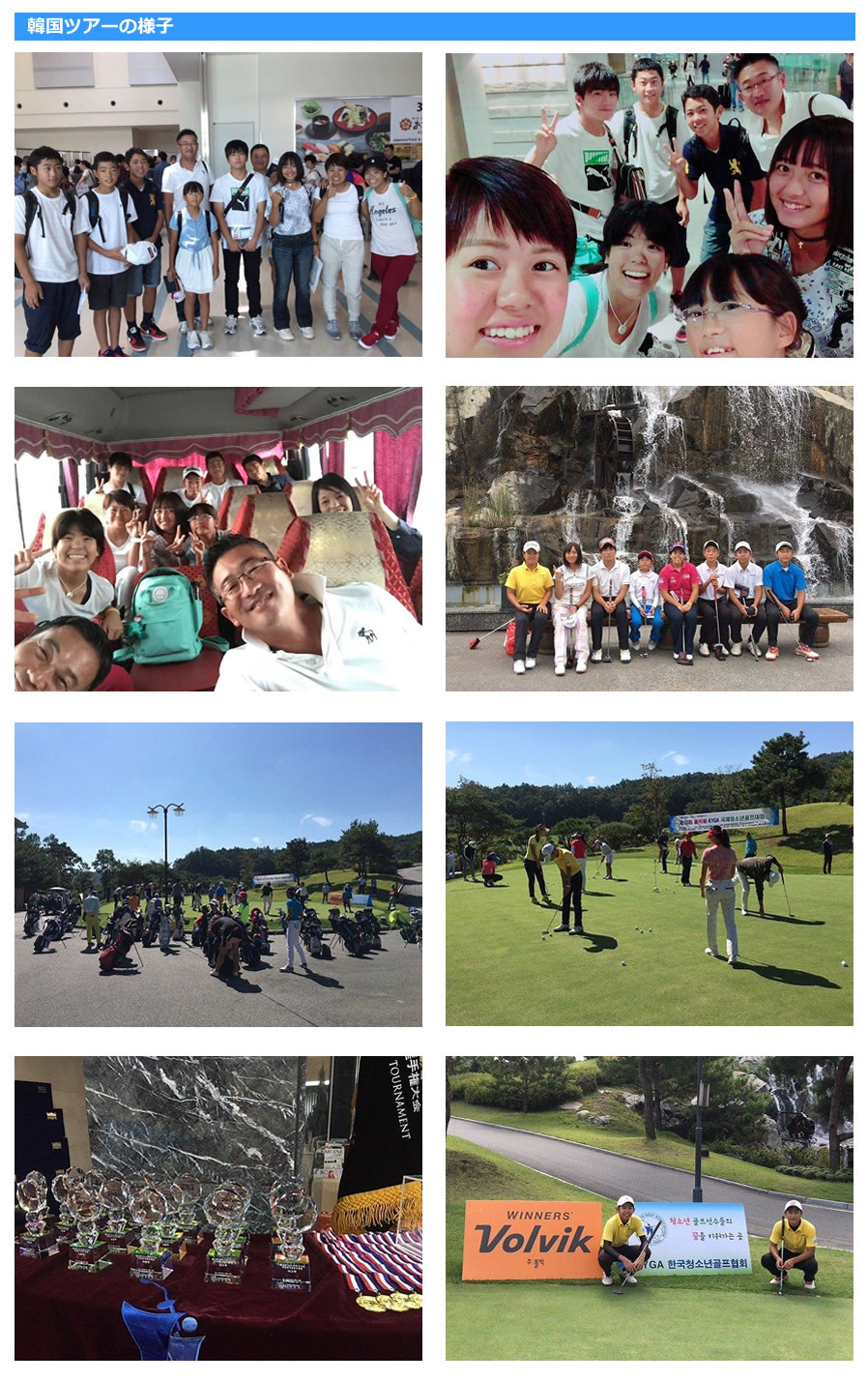 韓国忠北鎮川にあるアートバレーカントリークラブにて開催された第10回Volvik KYGA韓国青少年ゴルフ大会に参加致しました。大会総参加者数68組272名。5泊6日の行程で小学生から高校生の男女8名の選手が沖縄より参加しました。大会終了後には韓国のトップ選手が練習する世界最大ギネス認定の円形練習場で韓国選手の練習を視察しました。
